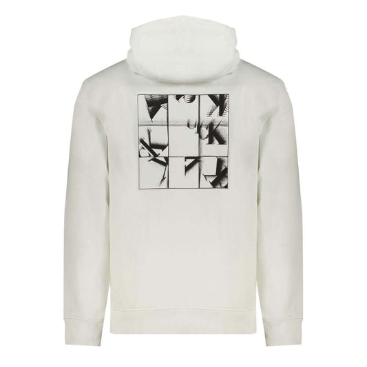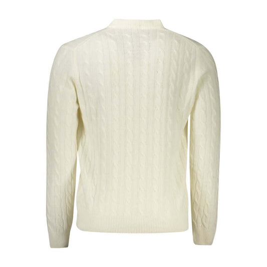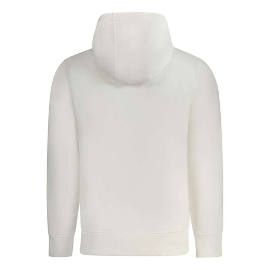 La Martina White Cotton Men Sweater with Hood and Zip Pockets