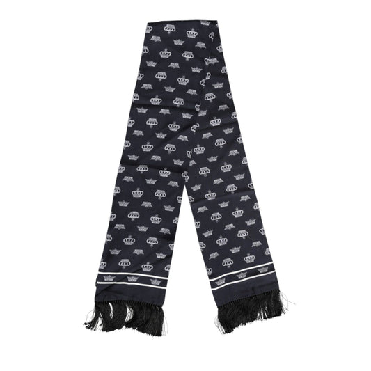 Dolce & Gabbana Black Silk Crown Fringes Men Foulard Scarf