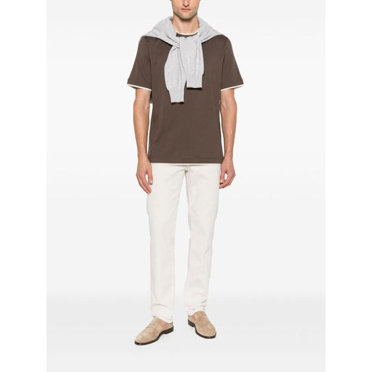 Brunello Cucinelli Cotton jersey crew neck T-shirt with logo and faux-layering