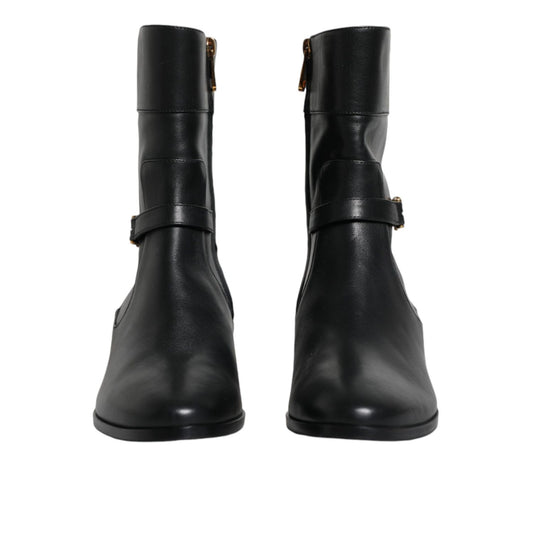 Dolce & Gabbana Black Leather Logo Mid Calf Boots Shoes