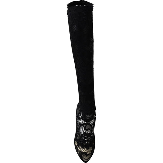 Dolce & Gabbana Black Taormina Lace Socks Boots Shoes Pumps
