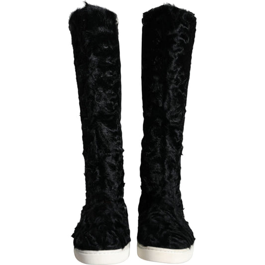 Dolce & Gabbana Black Xiangao Lamb Fur Leather Boots Shoes