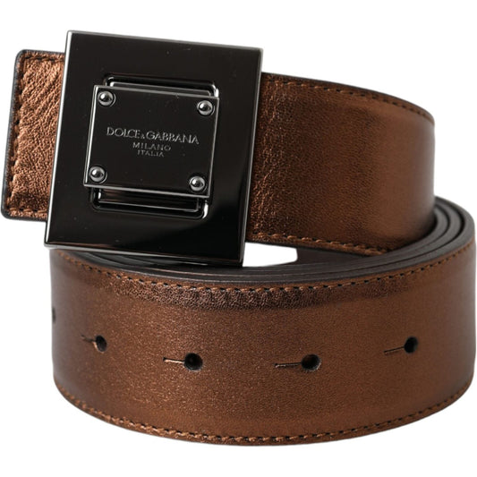 Dolce & Gabbana Bronze Leather Square Metal Buckle Belt