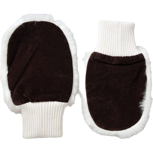 Dolce & Gabbana White Acrylic Knitted Fur Wrist Mitten Gloves