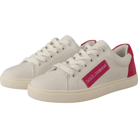 Dolce & Gabbana White Pink Leather Low Top Sneakers Womens Shoes