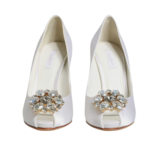 Dolce & Gabbana White Crystals Peep Toe Satin Pumps ShoesVendor:Dolce & GabbanaRegular price £709.00 GBPRegular price Sale price £709.00 GBPUnit price / perSale