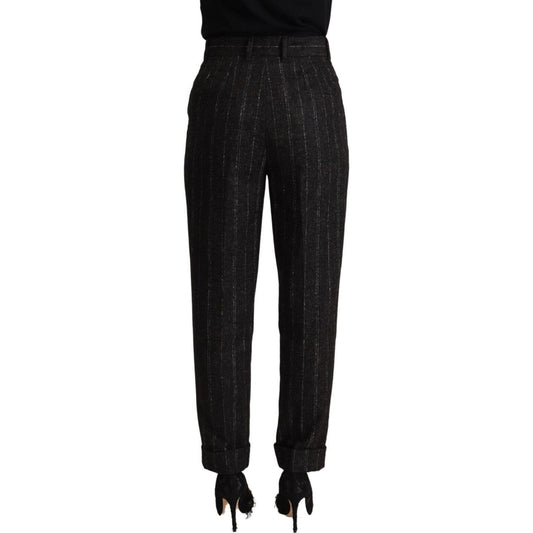 Dolce & Gabbana Black Striped High Waist Tapered Pants