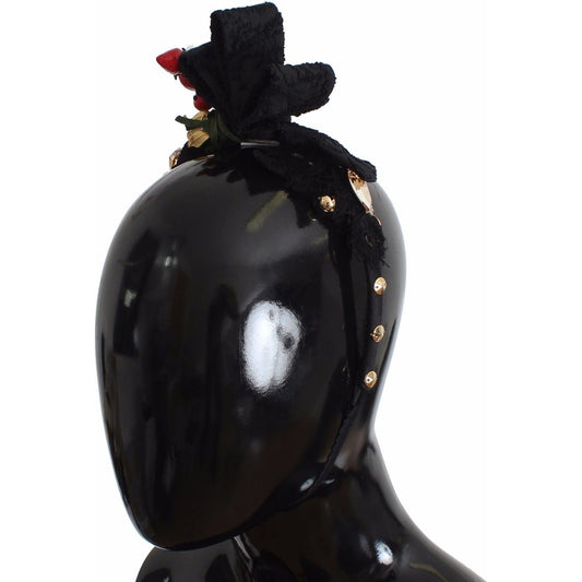 Dolce & Gabbana Black Crystal Gold Cherries Brooch Hat