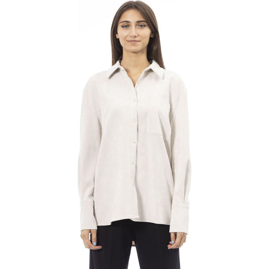 Dolce & Gabbana White Cotton Ascot Collar Long Sleeves Top