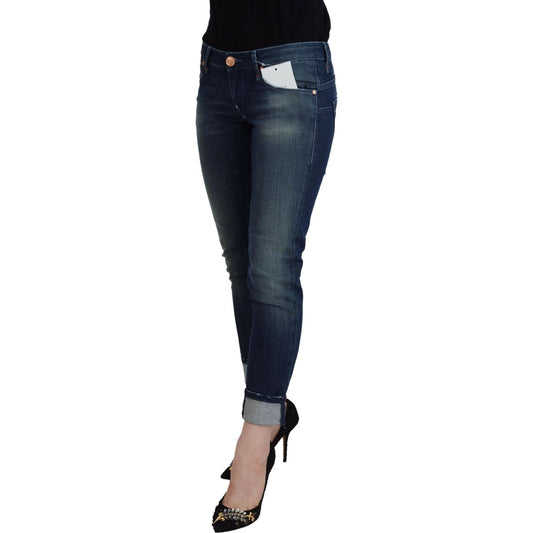 Just Cavalli Blue Washed Cotton Low Waist Slim Fit Denim Pants