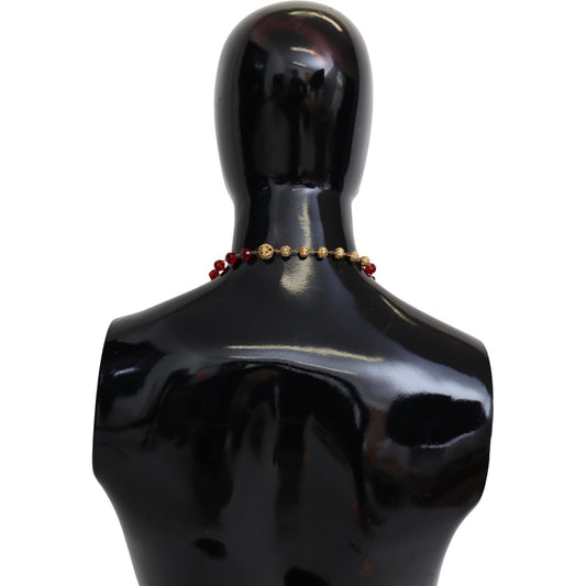 Dolce & Gabbana Gold Tone Brass Red Crystals Pendant Opera Chain Necklace