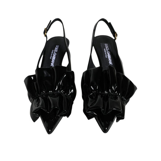 Dolce & Gabbana Black Patent Leather Heels Slingback Shoes