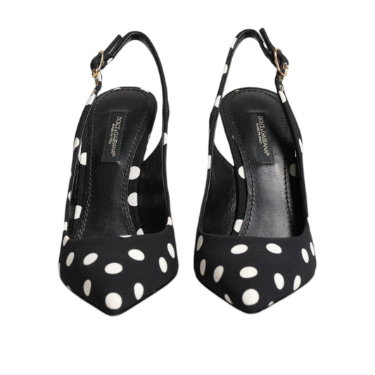 Dolce & Gabbana Black White Dotted Stiletto Slingback Shoes