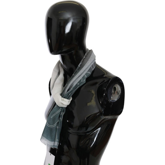 GF Ferre Green Wool Viscose Foulard Patterned Branded Scarf