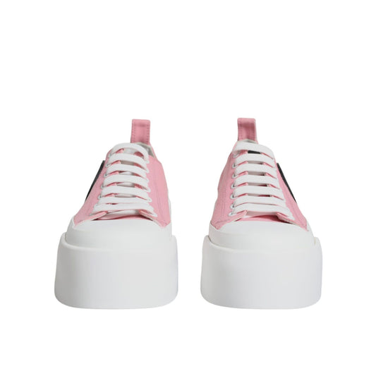 Dolce & Gabbana Pink White Canvas Logo Low Top Sneakers Shoes