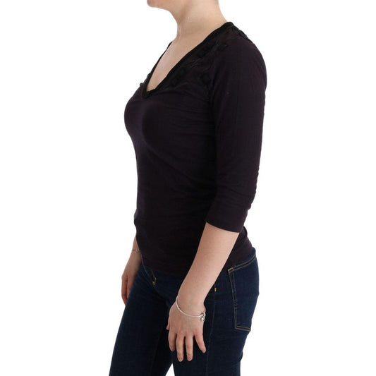 Dolce & Gabbana Purple Lace Long Sleeve Top Blouse