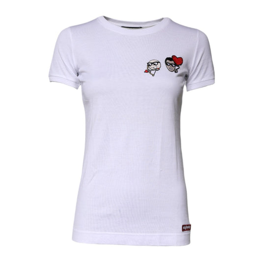 Dolce & Gabbana White Printed Round Neck Top Cotton T-shirt