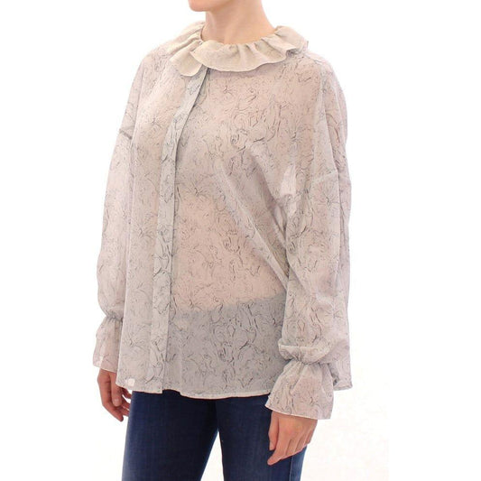 Dolce & Gabbana Gray Gold Key Print Silk Blouse T-shirt