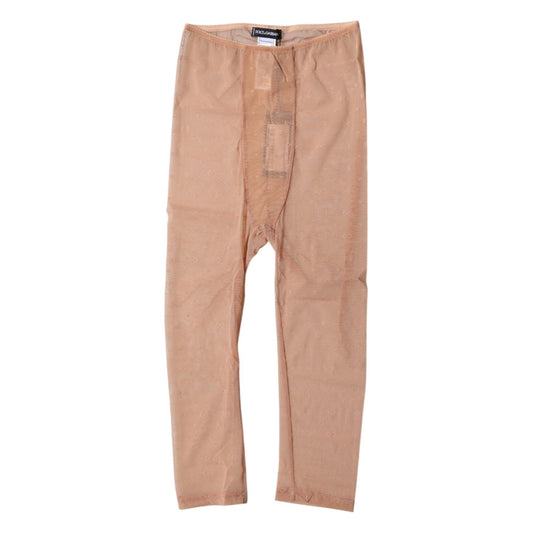 Dolce & Gabbana Beige Logo Lace Lingerie Cropped Tights Underwear