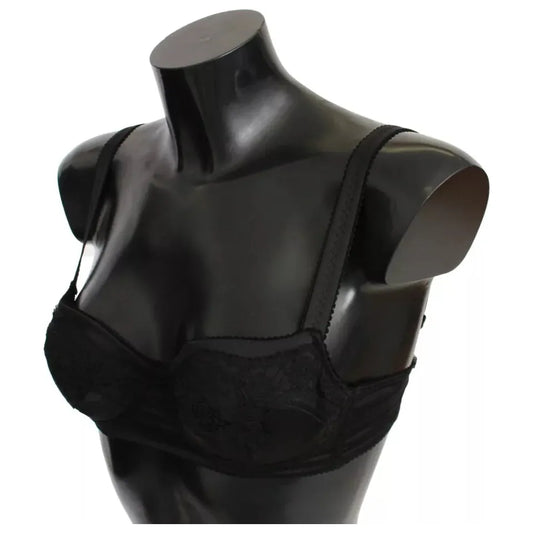 Dolce & Gabbana Black Floral Lace Nylon Balconcino Bra Underwear
