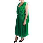 Dolce & Gabbana 100% Silk Green Sleeveless Pleated Maxi Dress