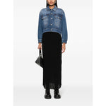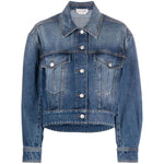 indigo blue cotton denim classic collar front button fastening two chest flap pockets long sleeves buttoned cuffs cropped Denim jacket Size and Fit - This piece fits true to size. We recommend you get your regular size. Model is 1,75m / 5ft 8in wearing size 40 (IT)