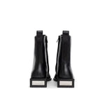 Botines de piel negros Throttle Alexander Wang. Botines de piel negra, puntera cuadrada, cierre con cremallera lateral oculta, tirador trasero de piel, tacón cuadrado de madera con placa metálica del logotipo, tacón parcialmente engomado.