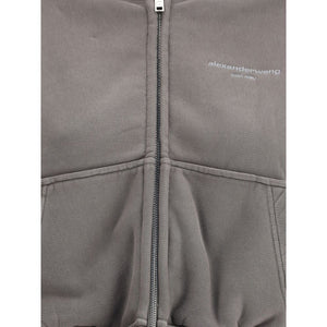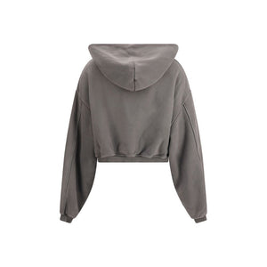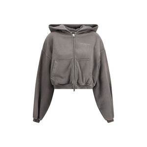 The Alexander Wang Hoodie reinterprets casual style with a contemporary twist. The cropped model features a front zip closure, patch pockets on the front and an elasticated hem that defines the silhouette. The slightly balloon sleeves add volume and character, while the iconic signature stitched on the front completes the piece with a recognisable and distinctive detail.