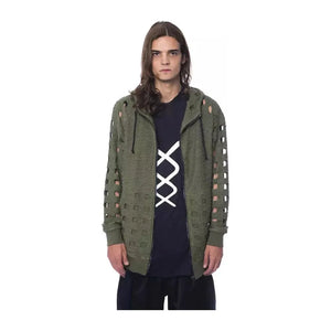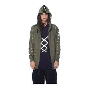 Elevate your style with Nicolo Tonetto’s statement oversized hooded fleece. Designed to make an impact, this Italian-crafted army-colored outerwear merges comfort with high-fashion detail. The bold zip closure and standout logo offer a look that’s effortlessly trendy. Whether it’s a casual day out or a chilly evening affair, this Nicolo Tonetto piece is the sartorial choice for the modern man.