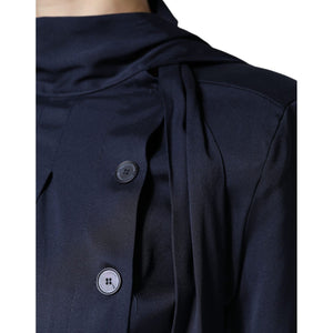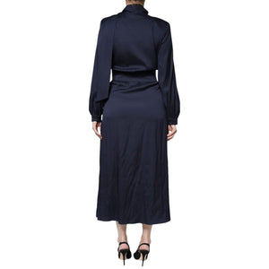 Ballantyne Dark Blue Long Sleeves Pleated A-line Maxi Dress