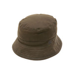 dark moss green cotton waxed embroidered logo to the front tonal stitching flat crown dropped narrow brim checked lining Waxed cotton bucket hat Size and Fit - BRIM: 5.0 Centimetres. CIRCUMFERENCE: 56.0 Centimetres.