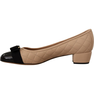 Salvatore Ferragamo Elegant Quilted Leather Pumps in Beige and Black