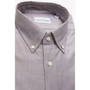 Exude refined sophistication with the Robert Friedman Button Down Regular Shirt. Crafted from the finest cotton, this timeless piece offers both comfort and unmatched style. Perfectly cut to complement the male silhouette, it’s a must-have that seamlessly transitions from boardroom to upscale soirées. The shirt’s subtle beige hue epitomizes elegance and versatility – it’s the epitome of wearable luxury. Elevate your wardrobe with this sartorial staple.
