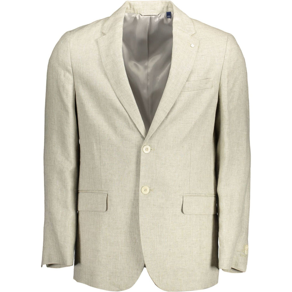 Gant Beige Linen Classic Jacket with Logo Detailing