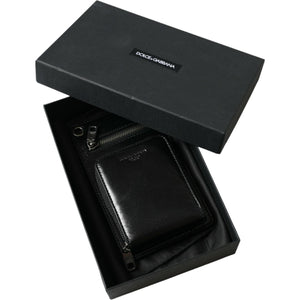 Dolce & Gabbana Wallet Black Horse Leather Zip Logo Cross Body Phone Slot