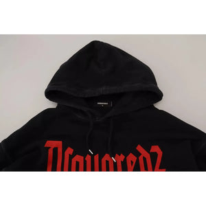 Dsquared² Black Cotton Hooded Printed Men Pullover Sweater