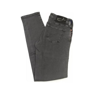 Elevate your denim collection with the exquisite craftsmanship of Jacob Cohen. These vintage-style jeans, with their signature logo button and meticulously embroidered pocket logo, are a testament to sartorial excellence. Adorned with a pony skin label showcasing the iconic Jacob Cohen emblem, they are fashioned from a sumptuous blend of cotton, polyester, and elastane for unmatched comfort and durability. Crafted with Italian finesse, these black jeans blend timeless elegance with modern sophistication.