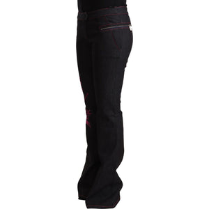 Exte Black Cotton Stretch Mid Waist Cotton Flared Denim Jeans