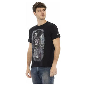 Elevate your everyday wardrobe with this sleek Trussardi Action T-shirt. Crafted for the modern man who appreciates the blend of comfort and style, this short-sleeve tee features a striking front print that makes a bold statement. Its premium cotton and viscose fabric ensures a soft, breathable fit perfect for any casual occasion. Proudly made in BD, this black tee embodies the bold and trendy essence that is signature to the Trussardi Action brand.