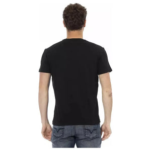 Indulge in the perfect blend of style and comfort with this Trussardi Action short-sleeve T-shirt. Flaunting a bold front print that exudes confidence, this tee is crafted for those who dare to stand out. Made with a premium mix of cotton and viscose, the tee offers a soft touch and a relaxed fit, making it a must-have for your everyday wardrobe. Strike a statement wherever you go, embodying the trendsetting spirit of Trussardi Action with this sleek black essential.