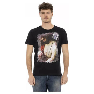 Elevate your style with the sleek ‘Trussardi Action’ short sleeve T-shirt, a prime example of casual sophistication. This striking black tee boasts a bold front print that captures attention, defining modern edge. Crafted with a blend of premium cotton and viscose, it delivers both comfort and durability. Perfect for any fashion-forward wardrobe, this T-shirt is a statement piece reflective of your impeccable taste and confidence.