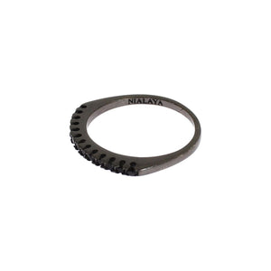 Nialaya Black CZ Rhodium 925 Silver Womens Ring