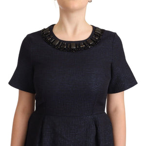 L'Autre Chose Black Embellished Short Sleeves Mini A-line Dress