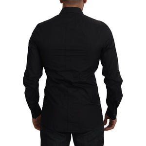 Dolce & Gabbana Black Floral Embroidery Men Long Sleeves GOLD Shirt