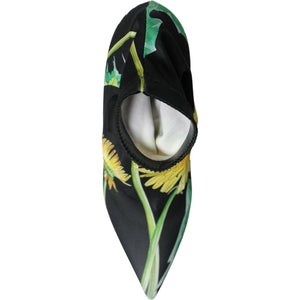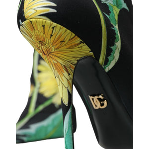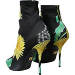 Dolce & Gabbana Black Floral Jersey Stretch Ankle Boots Shoes