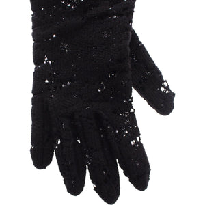 Dolce & Gabbana Black Lace Wool Lambskin Fur Elbow Gloves