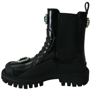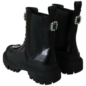 Dolce & Gabbana Black Leather Crystal Combat Boots