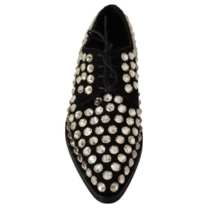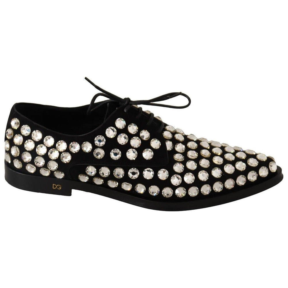 Dolce & Gabbana Black Leather Crystals Lace Up Formal Shoes