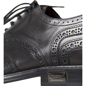 Dolce & Gabbana Black Leather Oxford Wingtip Formal Men Shoes