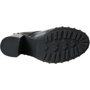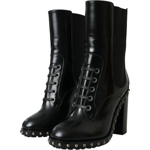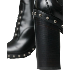 Dolce & Gabbana Black Leather Studded Lace Up Boots Shoes